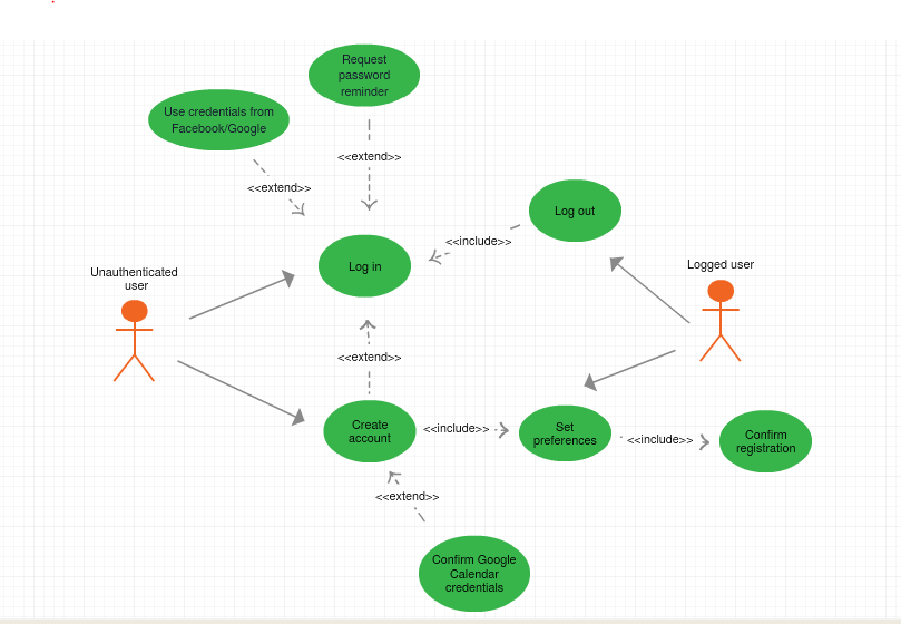 - Log in - if they already have an account they can authenticate using the email and the password, or they can use Google/Facebook credentials. The "Forgot password" option will send an email to the user's email containing a link for reseting the password.