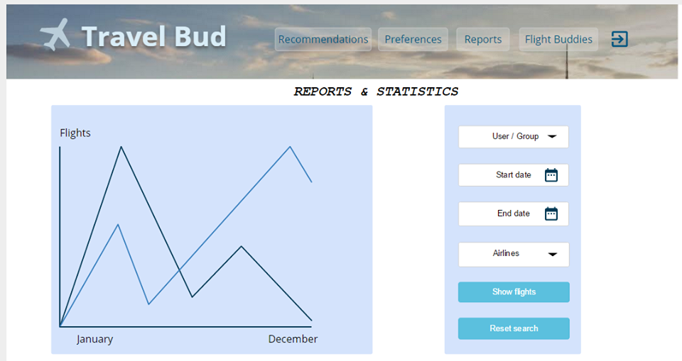 Even for experienced travelers, planning and booking trips can be daunting, especially if time is limited and there is no idea for the destination. Not to mention the group trips that are so difficult to organize, because finding suitable period for everyone is so laborious. These are some of the reasons that lead to the development of Travel Bud Web application, a tool meant to help users, by recommending flights of interest based on some predefined criteria.