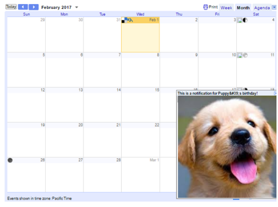 Google Calendar allows client applications to view and update calendar events in the form of JSON feeds. Our application uses Google Calendar API v3 to create new events, edit or delete existing events, and query for events that match particular criteria